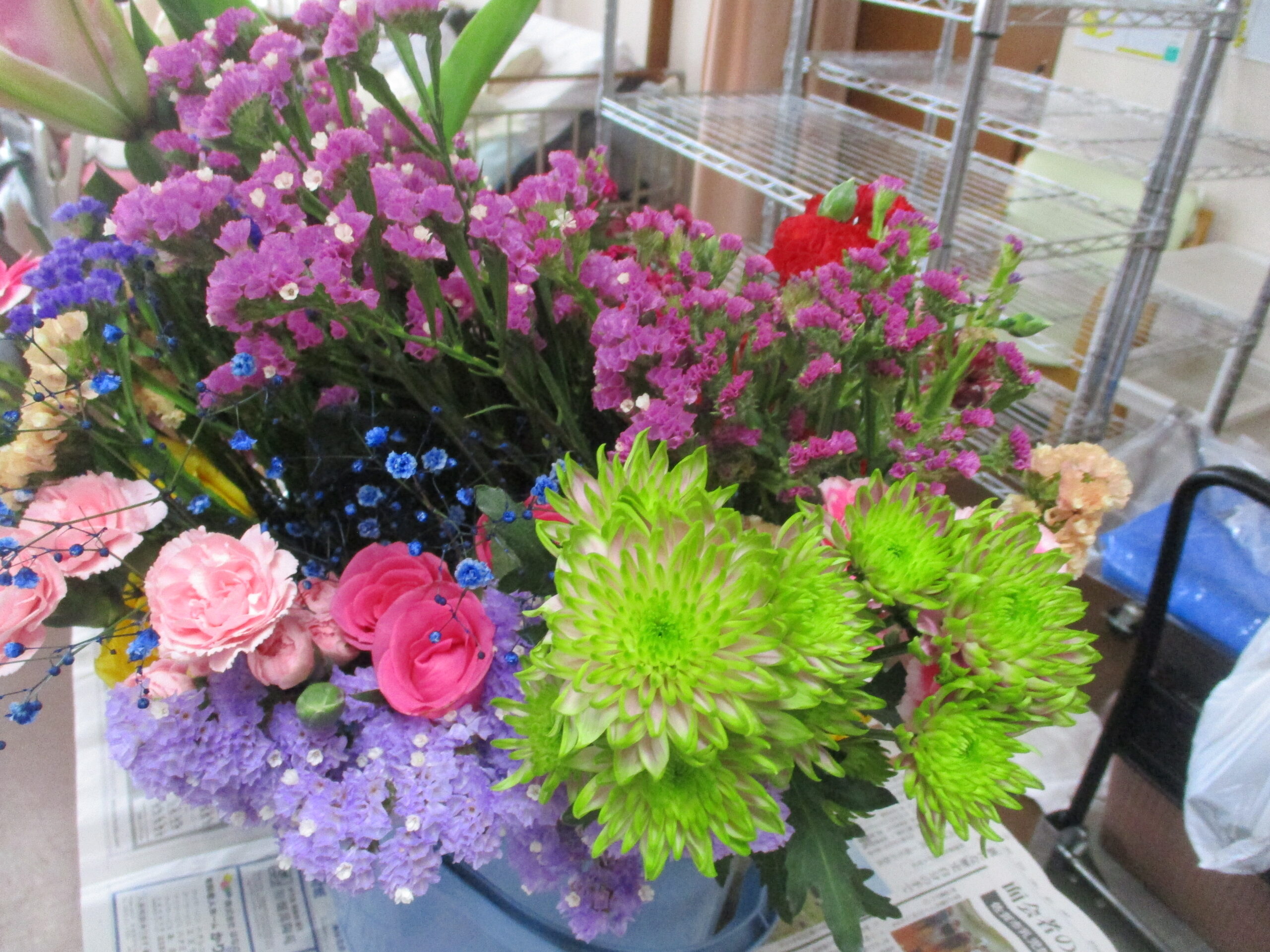 外用と各テーブルに置ける生け花用をしました。花を見るだけでも癒されますね💓