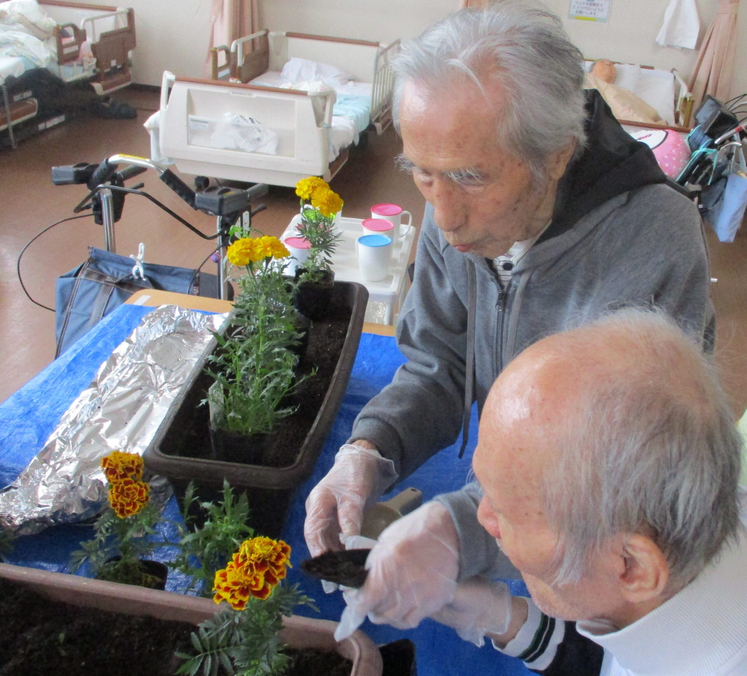 レクリエーションとして園芸をしました🌺一生懸命お花を植えて頂きました☺️