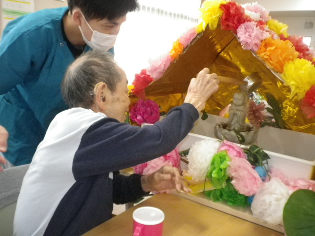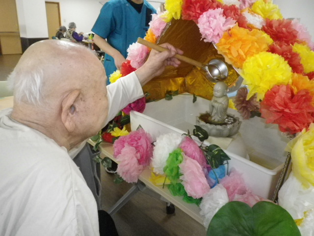 4月はお釈迦様の誕生のお祝いということで、季節の行事で花祭りを行いました🎉