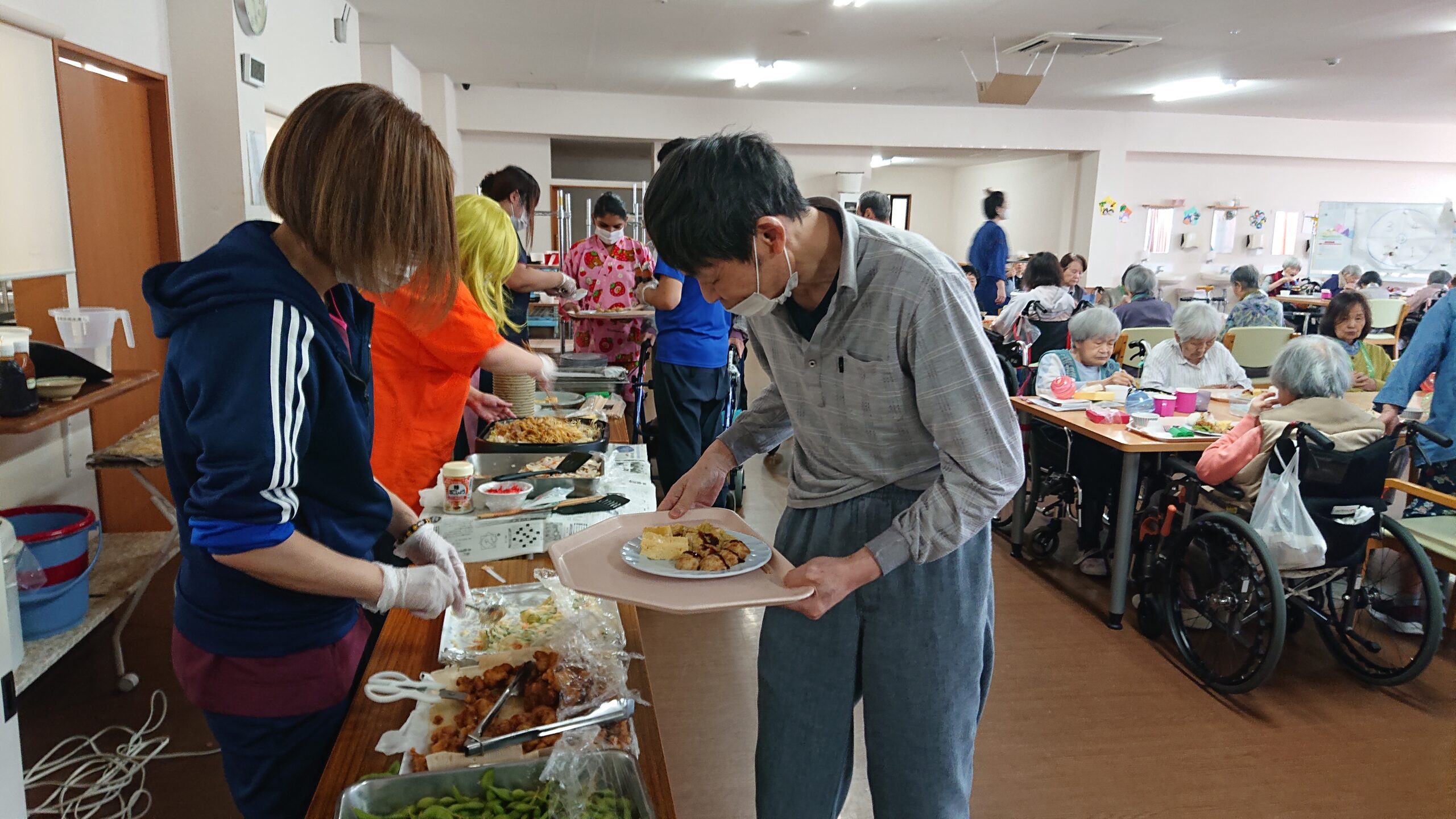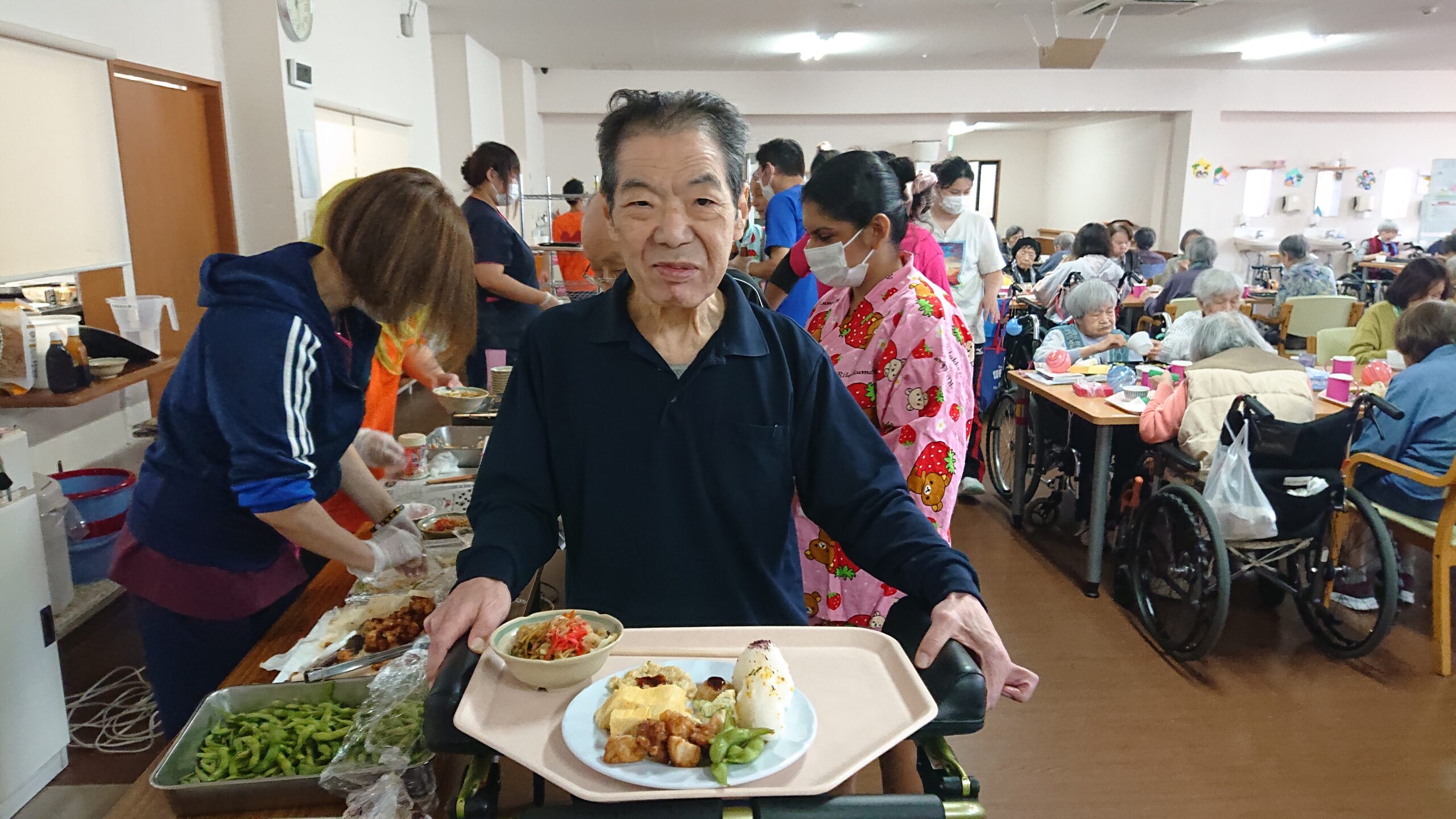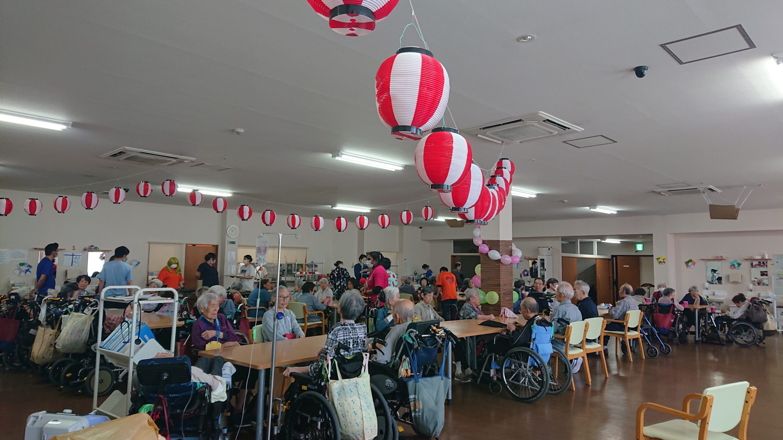 9月12日に納涼祭を行いました。当日は、ヨーヨー釣りや魚釣り等を皆様に楽しんで頂きました。お昼はバイキングを行い、食べたいものを選び、皆様たくさん食べられていました。利用者様皆さんの、たくさんの笑顔を見ることが出来て良かったです。